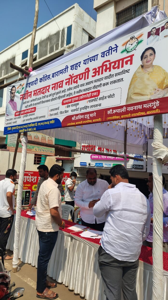दरम्यान, बारामती शहरात राष्ट्रवादी काँग्रेस पक्ष यांच्या वतीने नवमतदार नाव नोंदणी अभियान राबविण्यात येत असून युवक-युवती मोठ्या संख्येने नोंदणीसाठी पुढे येत आहेत. संबंधित कागदपत्रांसह नागरिकांनी वेळेत अर्ज सादर करून मताधिकार सुनिश्चित करावा, असे आवाहन करण्यात आले आहे.