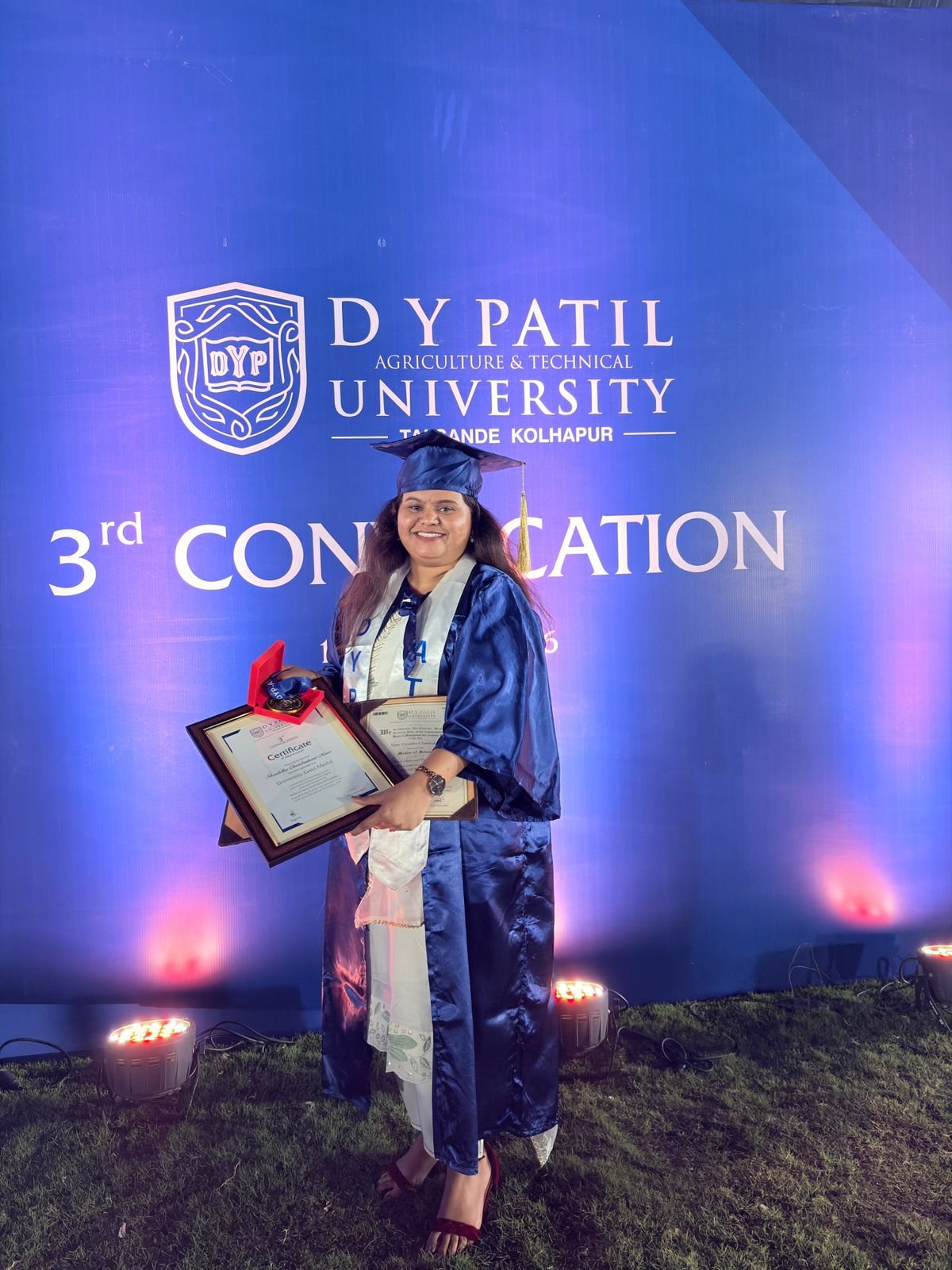 कोल्हापूर येथे दिनांक २० जानेवारी २०२६ रोजी झालेल्या दिमाखदार समारंभात विद्यापीठाचे अध्यक्ष मा. श्री. बंटी पाटील, मा. श्री. संजय पाटील व त्यांचे कुटुंबीय, तसेच कुलगुरू व उपकुलगुरू यांच्या शुभहस्ते श्रद्धा हिला गोल्ड मेडल प्रदान करून गौरविण्यात आले. हा क्षण केवळ एका विद्यार्थिनीचा सन्मान नव्हता, तर पालकांचे संस्कार, शिक्षकांचे मार्गदर्शन आणि विद्यार्थिनीच्या अखंड परिश्रमांचे तेजस्वी फलित होता.
